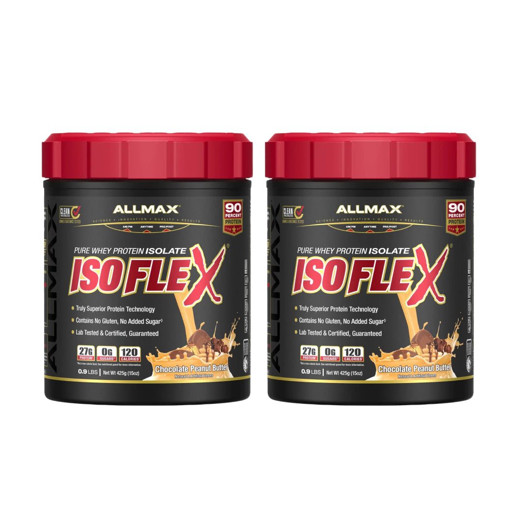 AllMax IsoFlex 0.9 Lbs (14 Servings) – Whey Protein Isolate tinh khiết nhất với công nghệ lọc HRI độc quyền. Cung cấp 27g Protein chất lượng cao, 0g đường, cực ít fat. Hấp thụ thần tốc, không Lactose, lựa chọn số 1 để xây dựng cơ bắp nạc hoàn hảo.